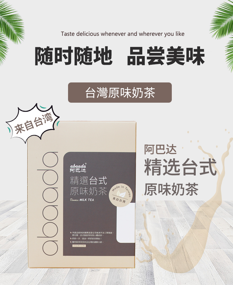 以阿薩姆、錫蘭及臺(tái)灣紅茶調(diào)制而成。天然、滑潤(rùn)、香醇。特有臺(tái)灣奶茶味
